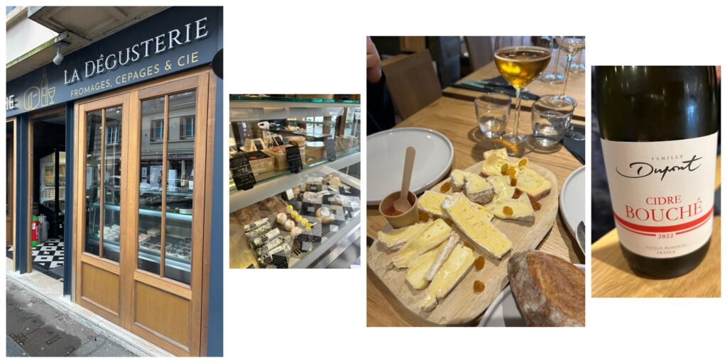 Kurze Zeit später sitzen wir in der Kirche des heiligen Käses Le Pont L’Évêque, in einem charmanten Käseladen-Restaurant namens La Dégusterie. Dort kann man regionale Käse kaufen oder sie gleich vor Ort mit Calvados-Weinbegleitung verschnabulieren – die meisten davon affinierte Rodolphe Le Meunier, Meilleur Ouvrier de France und Weltmeister der Maîtres Affineurs. Großartig!