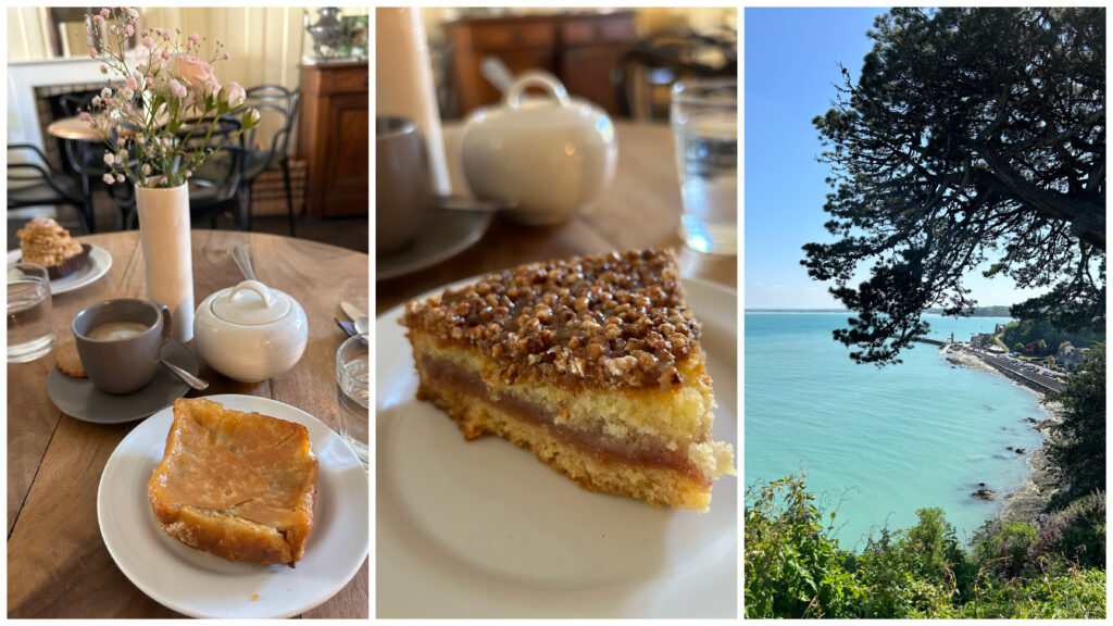 Traumhafte süße Stückchen, Torten und Tartelettes, Klassiker wie Mille-feuille und die Galettes cancalaises finden sich hier ebenso wie saisonale Spezialitäten. Mir bis dato unbekannt: der Ar Gwastell, (Foto Mitte) ein Kuchen, der bretonische Aromen mit saisonalen Früchten verbindet – bretonisches Sablé, Madeleine-Biskuit sowie Erdbeer- und Rhabarberkonfit, gekrönt von einer knusprigen Buchweizen-Nougatine.