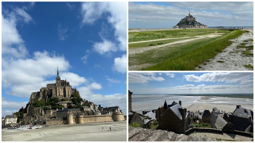 Le Mont-Saint-Michel ist eine mittelalterliche Klosterinsel in der Normandie, die bei Flut vom Meer umschlossen und bei Ebbe über einen Damm erreichbar ist – einzigartig, wunderschön und zu Recht eines der bekanntesten Wahrzeichen Frankreichs.